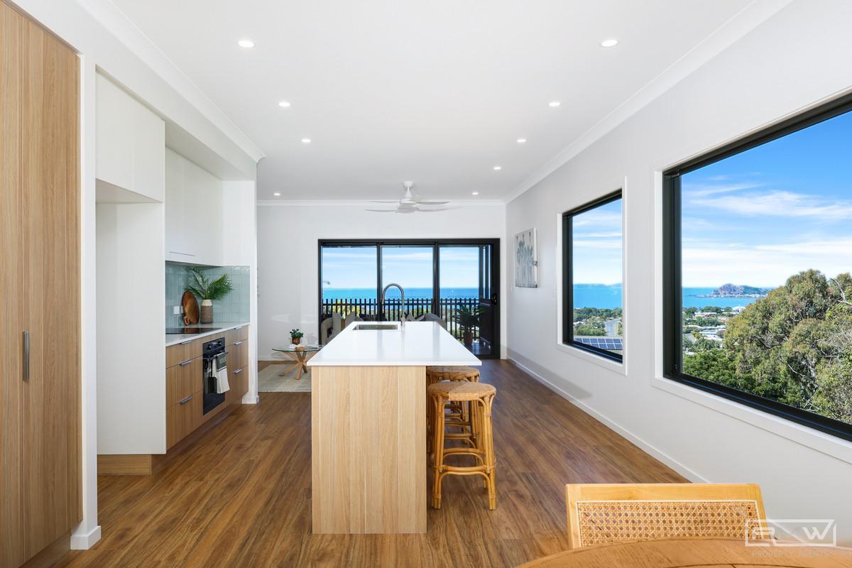 With air-conditioning throughout, the open-plan kitchen, dining, and living area is perfect for relaxed coastal living. Large windows and elevated positioning flood the home with natural light and cool sea breezes, while framing those breathtaking views.