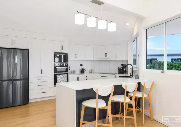 Downstairs, the second living area, full kitchen, two bedrooms, and stylish bathroom provide flexibility for guests, extended family, or dual-living arrangements. Step outside and you'll find a resort-style pool, generous alfresco space, and beautifully landscaped gardens, all leading directly to the sand.