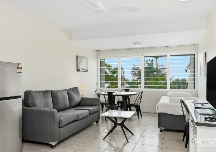 Wake up to palm framed ocean views through your louvred windows, feel the sea breeze roll in, and step outside to stroll across to the sand. From morning swims to sunset walks along the marina, this address delivers the coastal lifestyle buyers dream of.
