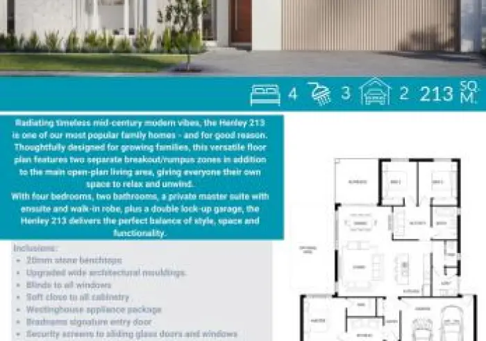 • Predominantly 4 bedroom, 2 bathroom, 2 car homes