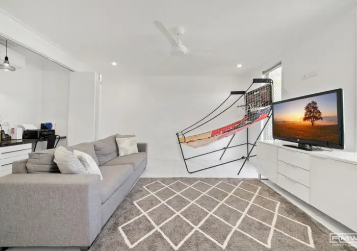 Upstairs also features the main bedroom complete with a walk-in robe, ensuite, and air conditioning, along with two additional bedrooms. Downstairs offers added versatility with a fourth bedroom that has been converted into an office or additional living space, making it ideal for those working from home or needing extra room for the family.