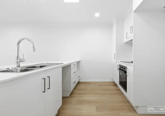 At the centre of the home, the kitchen is both functional and elegant, complete with sleek cabinetry, quality appliances and a generous island bench that naturally brings people together.